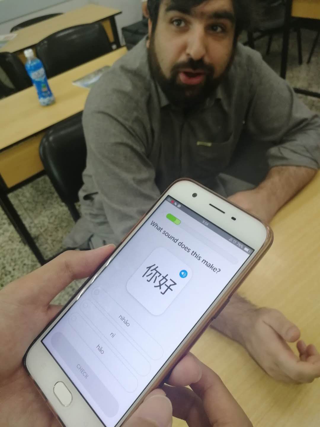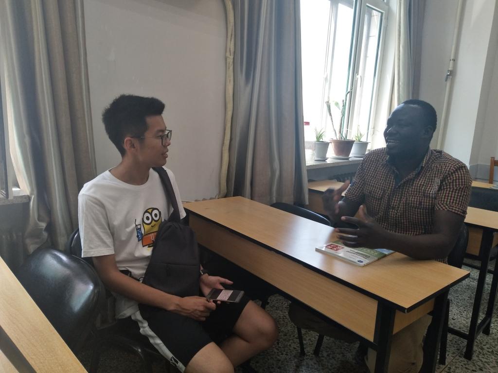 在采访过程中一位来自巴基斯坦的男生为研究生同学们热情地介绍了他自己经常使用的汉语学习软件——“鱼软件”,他告诉我们:“这一软件主要是翻译词汇和句子,这个软件具有很强大的翻译功能,可以让学习者快速地了解词汇和句子的含义和用法”。但当研究生问到有没有真人交际或口语练习的软件时,外国学习者表示并没有接触到这种类型的软件,并表示期待有一款这样的软件的出现,可以帮助他们进行语言的学习。