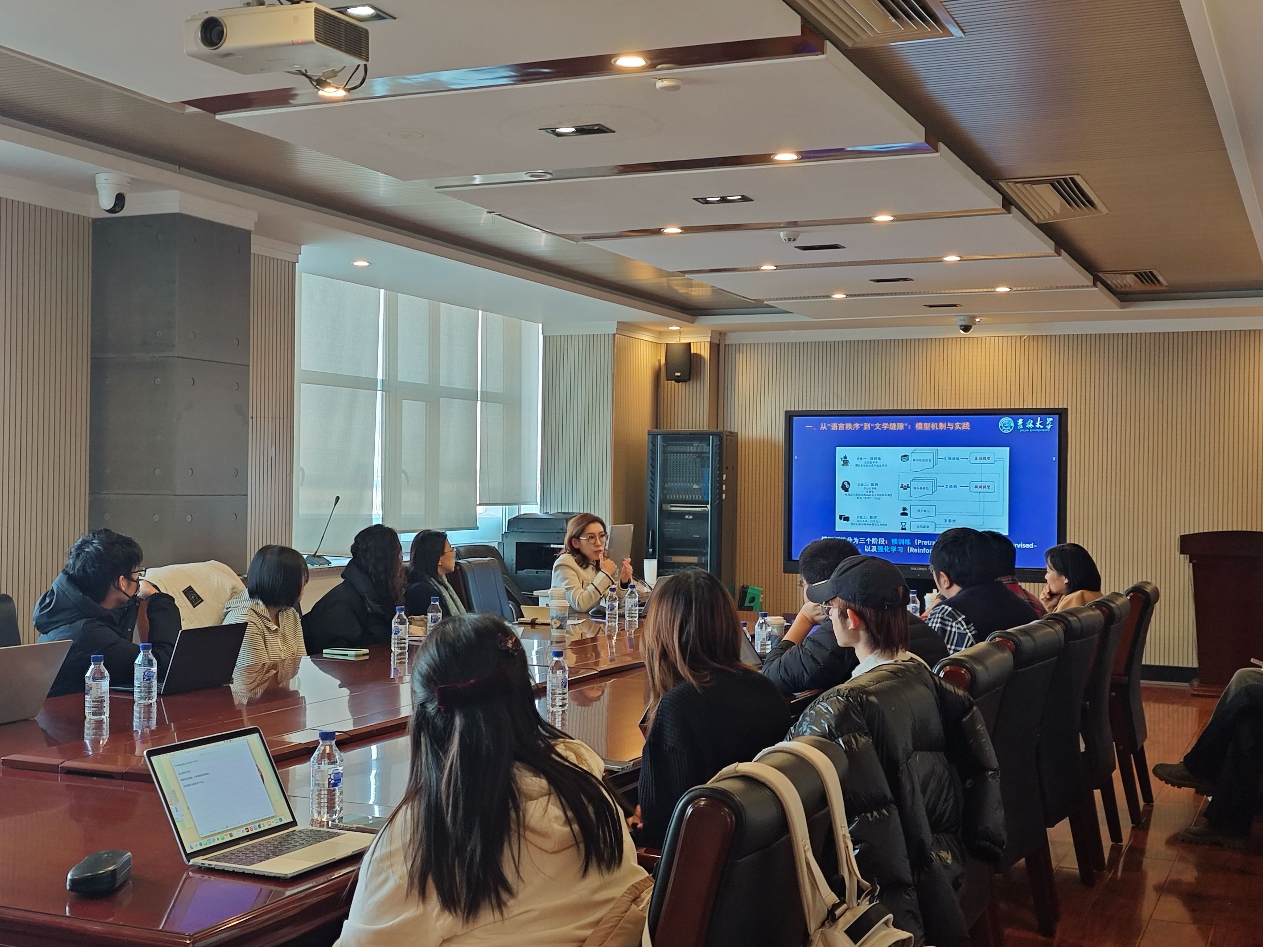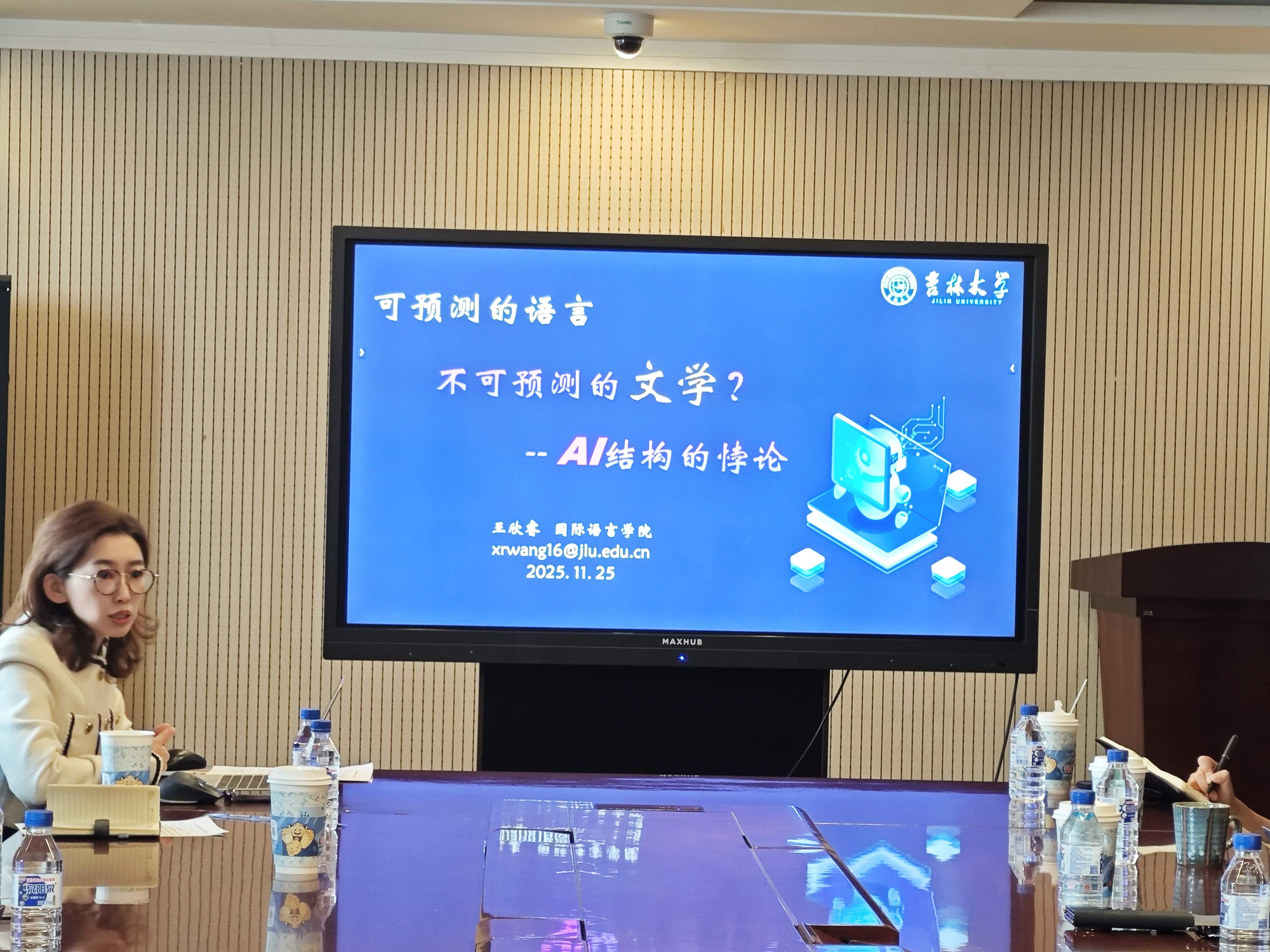 王欣睿副教授作了题为“可预测的语言,不可预测的文学?——AI结构的悖论”的学术报告。王欣睿副教授长期从事国际中文教育与现当代文学交叉研究。本次报告聚焦 AI 技术对文学创作的深层影响,展现了跨学科研究特色。