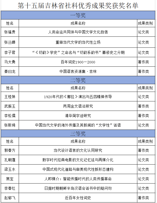 日前,中共吉林省委、吉林省人民政府印发了《关于表彰第十五届吉林省社会科学优秀成果奖获奖成果的决定》。