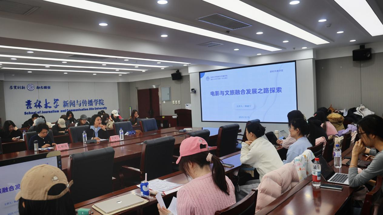 “部校共建新闻讲堂”系列讲座《电影与文旅融合发展之路探索》于东荣大厦10楼会议室顺利举办。本次讲座特邀电影频道电影创作部主任、一级文学编辑,现挂职吉林省文化和旅游厅党组成员林丽宁老师担任主讲嘉宾,围绕“电影与文旅融合发展之路探索”的主题进行了分享,讲座由吉林大学新闻与传播色情直播