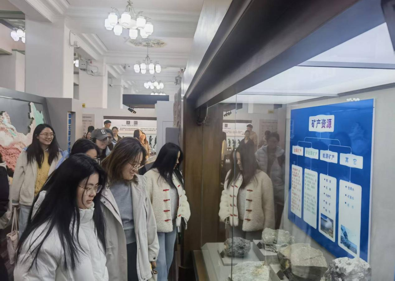 同学们驻足流连,或俯身观察化石的细微纹路,或轻声讨论矿物的形成原理,或认真记录地质演化的关键节点。从地球的起源到生命的演化,从矿物资源的勘探到地质环境的保护,跨学科的知识盛宴让大家跳出了新闻学的专业框架,提升了科技素养,为同学们的新闻创作注入了新的灵感与素材。